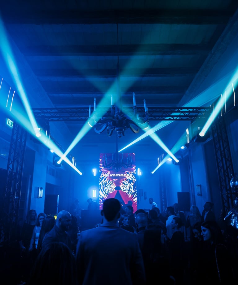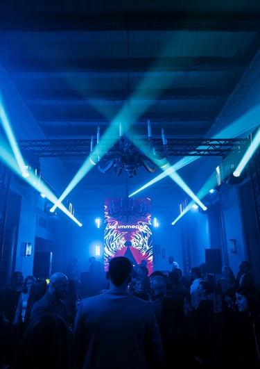 Dynamic visual elements enhancing engagement through screens, projections, and displays.
